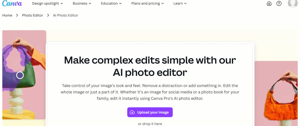 Canva’s AI-powered photo editor streamlines intricate editing tasks, making them easy to handle for users at any skill level. It comes with impressive AI features like Magic Edit, which allows users to add or remove elements within a photo by clicking or brushing over specific areas.