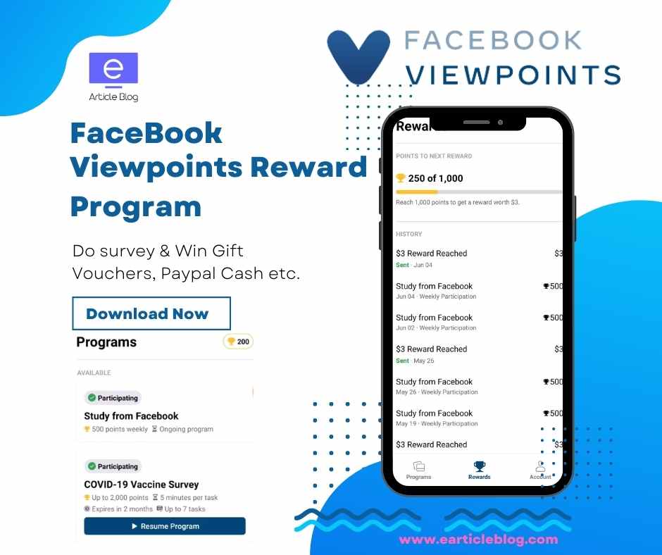 We are living in social world & now we all are using facebook & Instagram regularly. To learn the online behavior, social media usage facebook launched facebbok Viewpoints reward program where by participating survey or