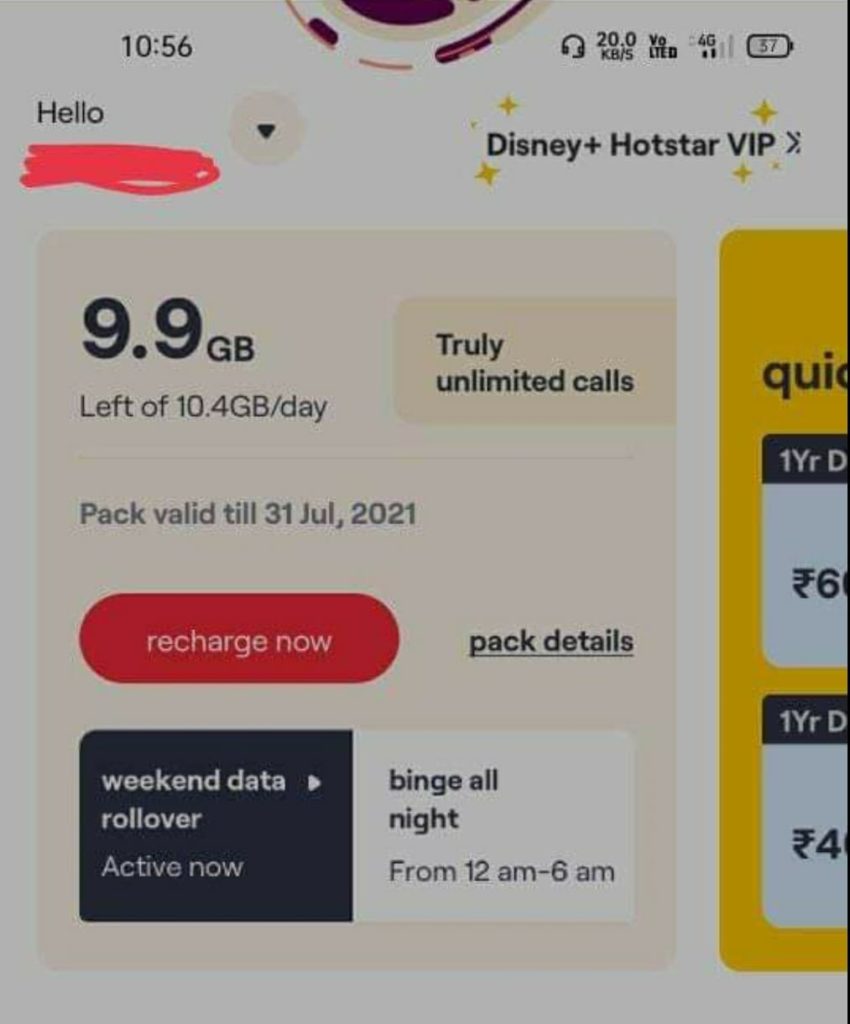 You can also get zee5 and hotstar VIP one year membership by recharging vi unlimited data packs .Below i am listing Hotstar one year VIP membership recharge pack details below.