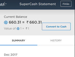 • ‎You will find new option against your supercash called as “Convert to cash“.