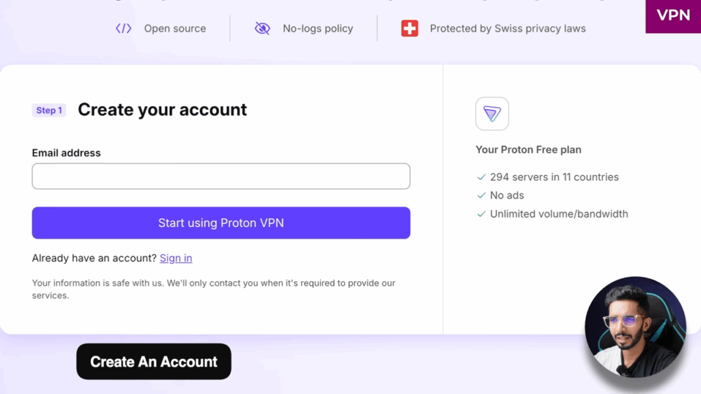 5. After doing so, it will redirect you to the homepage of ProtonVPN, where you have to create your account.