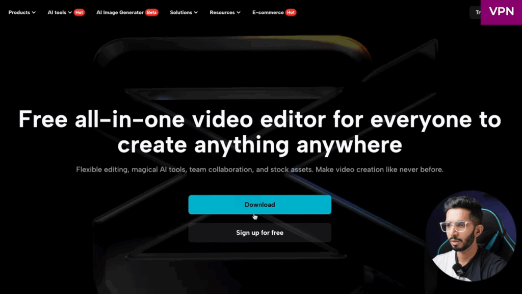 12. After clicking on the link, it will redirect you to the CapCut homepage. On the homepage, you have to click on the download button shown in the middle.