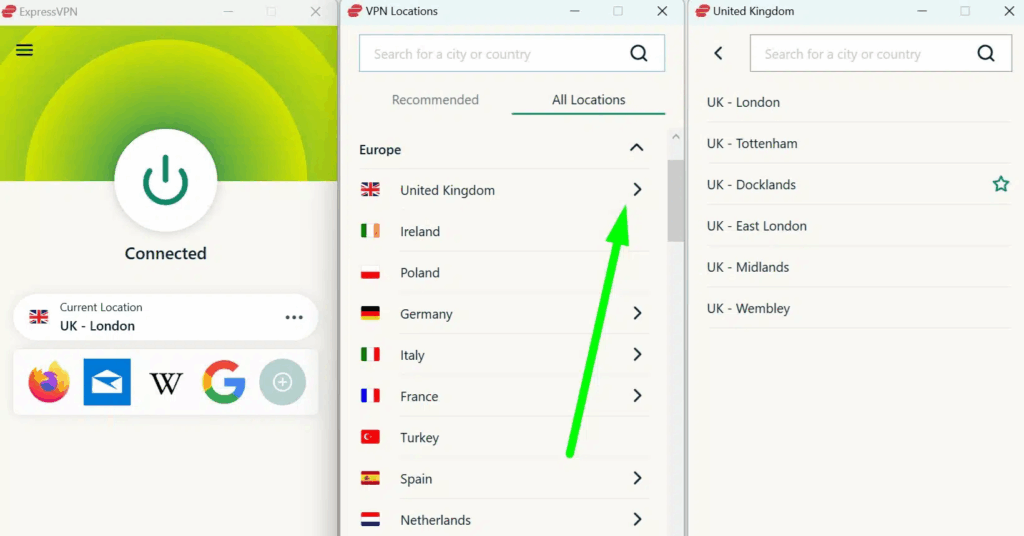 ExpressVPN is known for its reliability, fast, and secure connections. ExpressVPN delivered an average speed of 132.43 Mbps, which is slower as compared to other VPNs, but it is still be best VPN for CapCut. Its advanced privacy features, like robust DNS and IPv6 leak protection, keep your online activities secure.