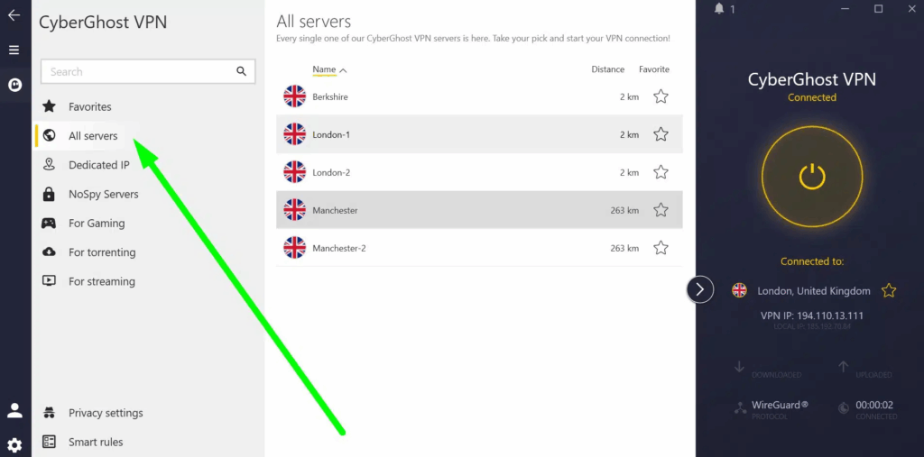 CyberGhost offers several different servers for different tasks that are tailored for streaming, torrenting, and its wide network spanning across 100+ countries. CyberGhost offers an average speed of 163.75 Mbps, which you can easily unblock CapCut, edit your videos, watch your favorite shows, or use P2P networks.